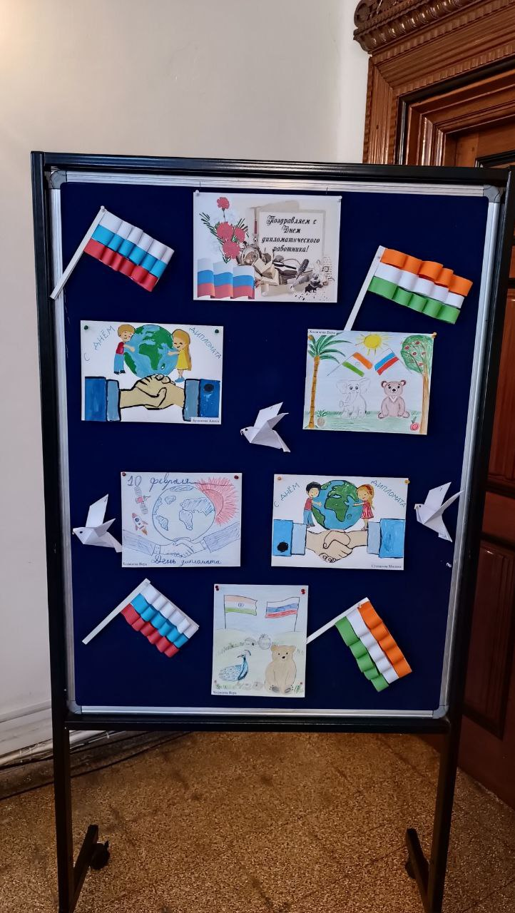 10 февраля в Генеральном консульстве России в Ченнаи прошло торжественное празднование Дня дипломатического работника. По случаю праздника учащиеся школы подготовили концертное выступление, выставку рисунков. Ученики школы вручили дипломатическим работникам поздравительные открытки, выполненные своими руками.